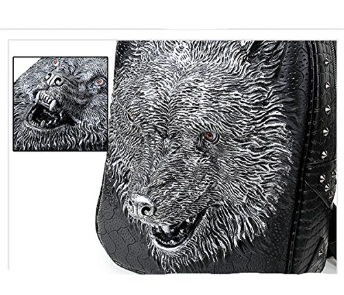 -. Title : JJJJHUA Unique Design Cool 3D Wolf Head Premium PU Leather Backpack Laptop Shoulder Bag