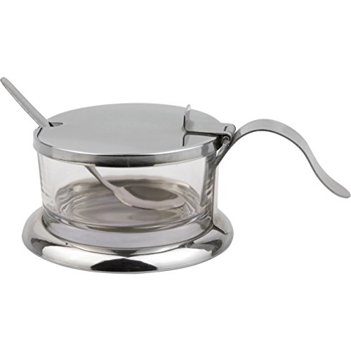 Studio : Cuisinox Publisher : Cuisinox Binding : Kitchen Product Description This versatile bowl can be used for either grated parmesan cheese, sugar or mixed nuts. Made of stainless steel with a glass insert it also includes a stainless steel spoon. It's stylish handle makes it easy to manipulate. Simply flip open the cover and serve. 0