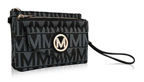 Product Description These designer handbags are part of the MKF Collection by Mia K. Farrow, they're manufactured of high quality faux leather giving it durability for long lasting use. This unique and lovely crossbody shoulder bag has a secure snap closure to keep your belongings from falling. MKF Collection handbags always keep interesting interiors in the case of our Manny crossbody wristlet bag the interior features one zippered pocket in one compartment and the other has a separate compartment furthermore the exterior is enhanced with gold tone embellishments and rhinestones. Not to mention that this crossbody wristlet also has a very comfortable removable/adjustable shoulder strap that adjusts up to 50 inches long giving you the potential to either wear it as a crossbody or as a handbag and wristlet with its 7 in removable wristlet strap. The approximate measurements of this stunning shoulder bag are 8.5 in W x 3 in D x 5.5 in H. Conveying this gorgeous crossbody bag for women will prompt you instant style no matter where you're standing! 0