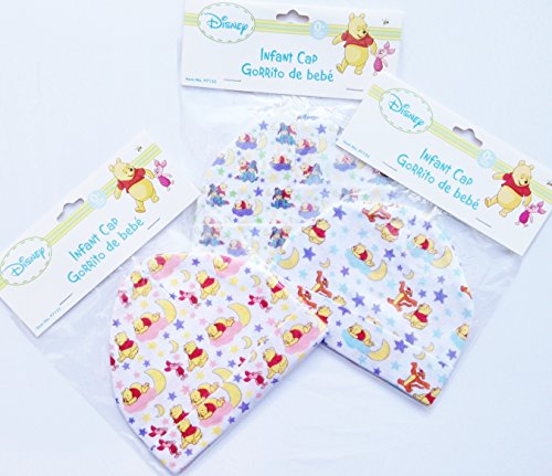 DISNEY'S WINNIE-THE-POOH NEWBORN INFANT CAP - WITH POOH, PIGLET, TIGGER & EEYORE (PACK OF 3)