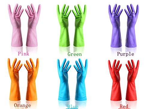 -. Feature : Bright finger colors make household cleaning funny. / Reusable gloves / Embossed palm / Size: 5 * 12.2 Inch long cuff & Medium, One size fits most / Set of 4, Colors will vary, you may receive different colors than sample photo.