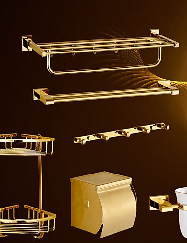 -. Title : Chrome Bathroom Under Basin Sink Storage Shelf Rack & Towel Rail?Bath Accessory Set,Contemporary 6 piece Gold-Plated Brass Material hardware set