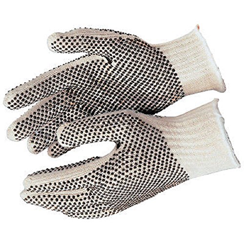 PERFECTLY FIT, TWO SIDED BLACK DOTTED COTTON STRING KNIT WORKING GLOVES - 10 Pairs X-Large