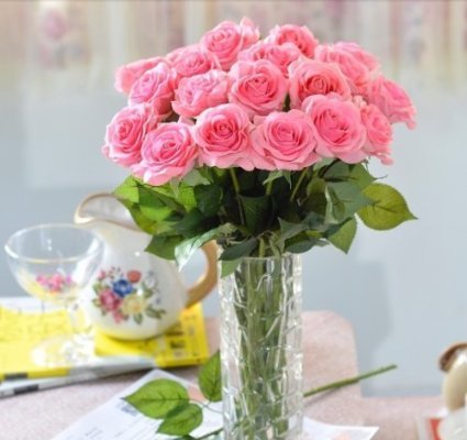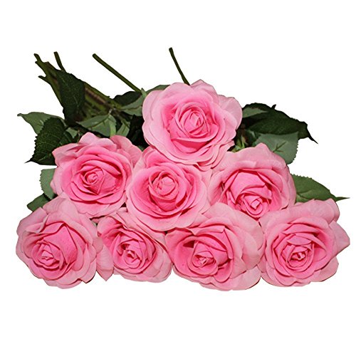 Idealgo 10pcs Head Real Touch Latex Rose Flowers Rose Flower Bouquet Sweet Roses Silk Artificial Bouquet valentine's Day/wedding/home Decorations (10, Pink(dark))