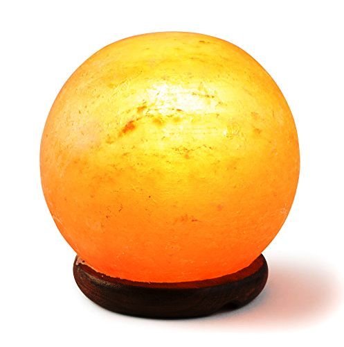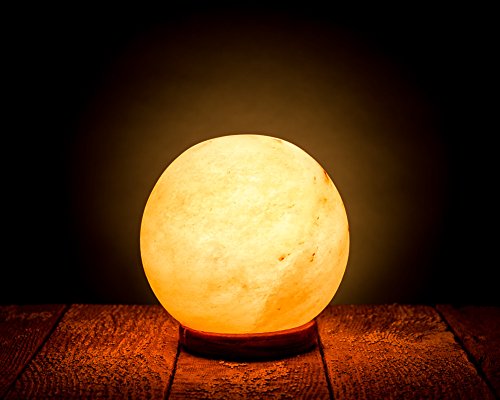 Rock Salt Sphere Shaped Lamp with Wood Base