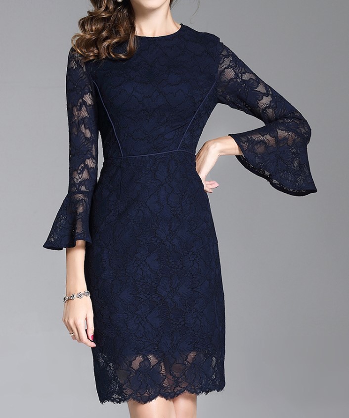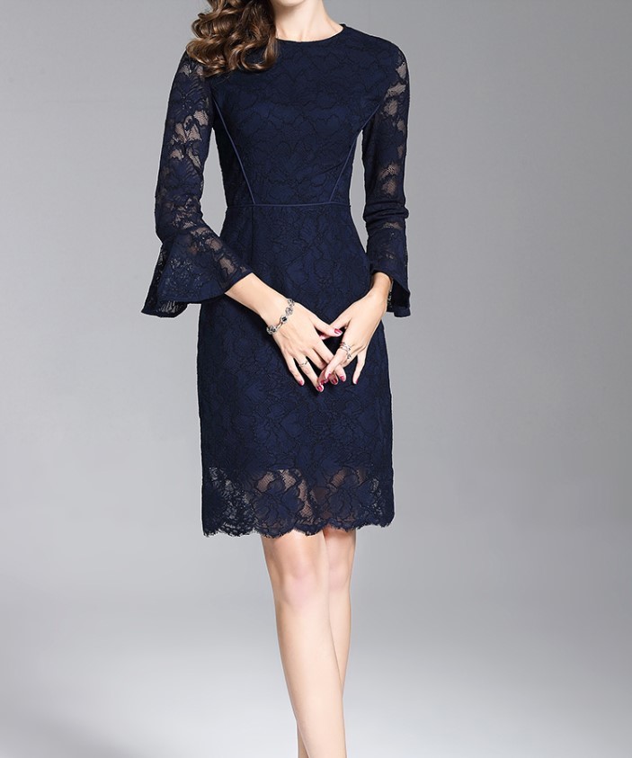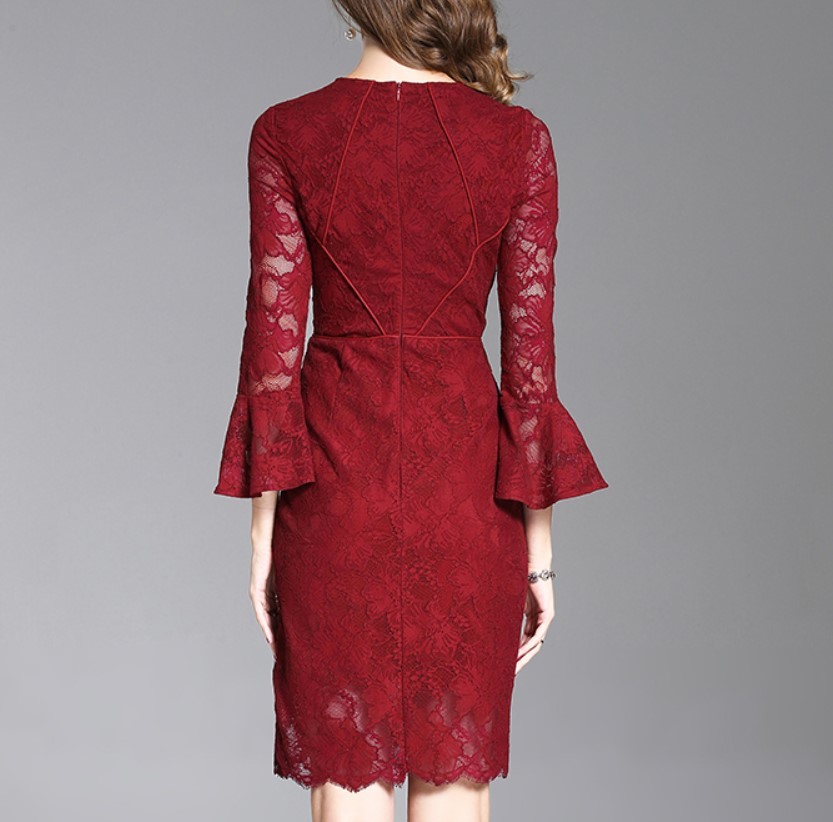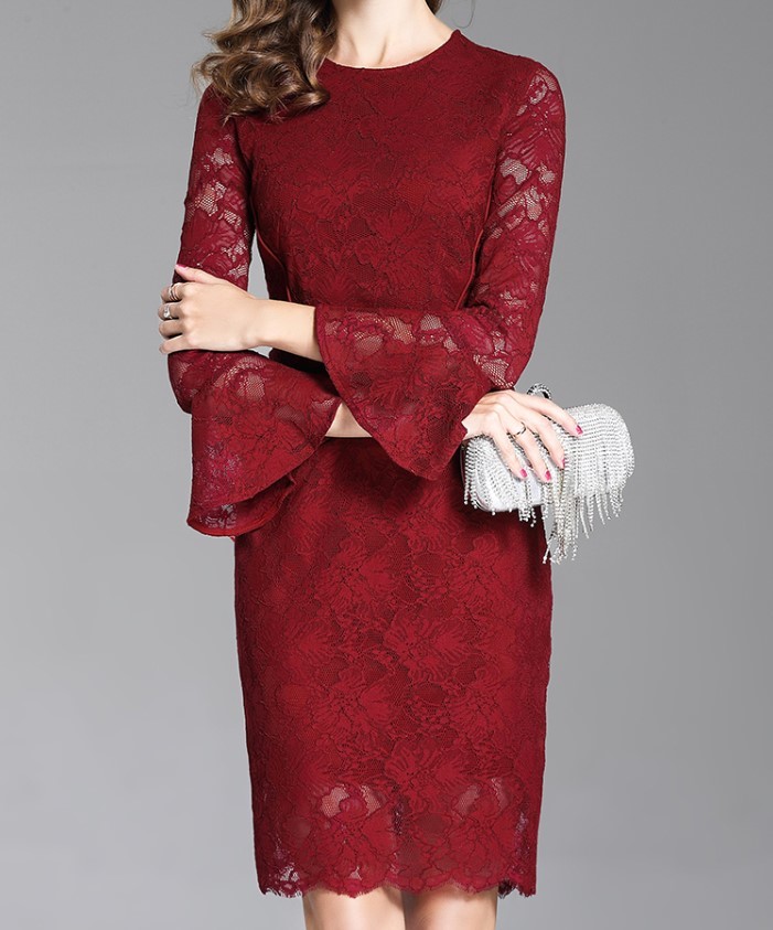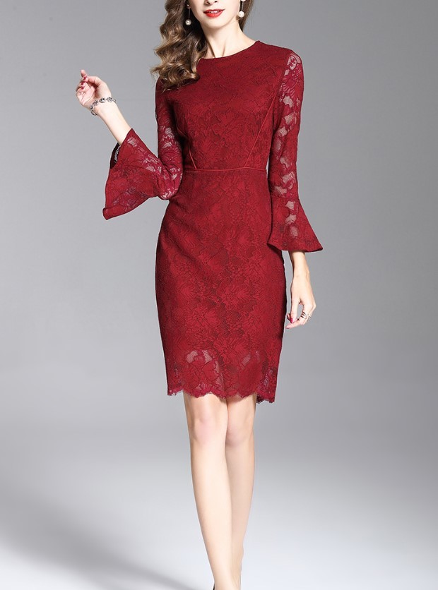 透け感が色っぽいひざ丈レースワンピース。