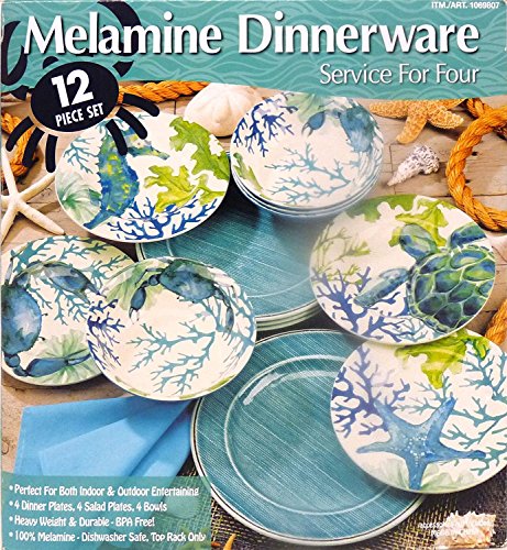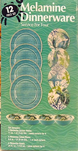 Studio : Pandex Publisher : Pandex Product Description Spice up your dining space with this beautiful 12pc Melamine dinnerware. Constructed out of 100% Melamine, these plates and bowls are perfect for indoor or outdoor entertaining with the look and feel of ceramic. This beautiful set is suitable for any occasion. Includes: 4 dinner plates: 11" Diameter 4 salad plates: 8.6" Diameter 4 bowls: 24 Oz. Features: 100% Melamine Heavy weight and durable Dishwasher safe Not for use in a microwave or oven 0