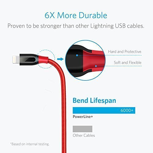 Lasts 6X Longer: Reinforced stress points with a 6000+ bend lifespan make PowerLine+ many times more durable than other Lightning cables.