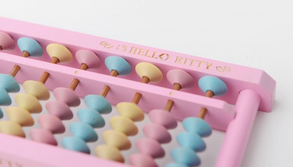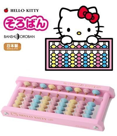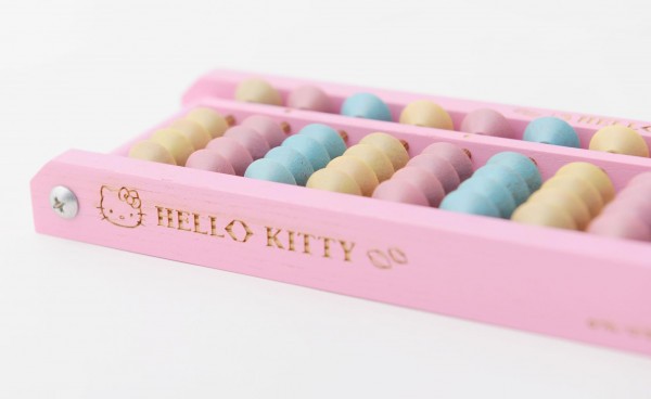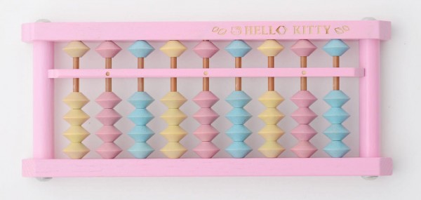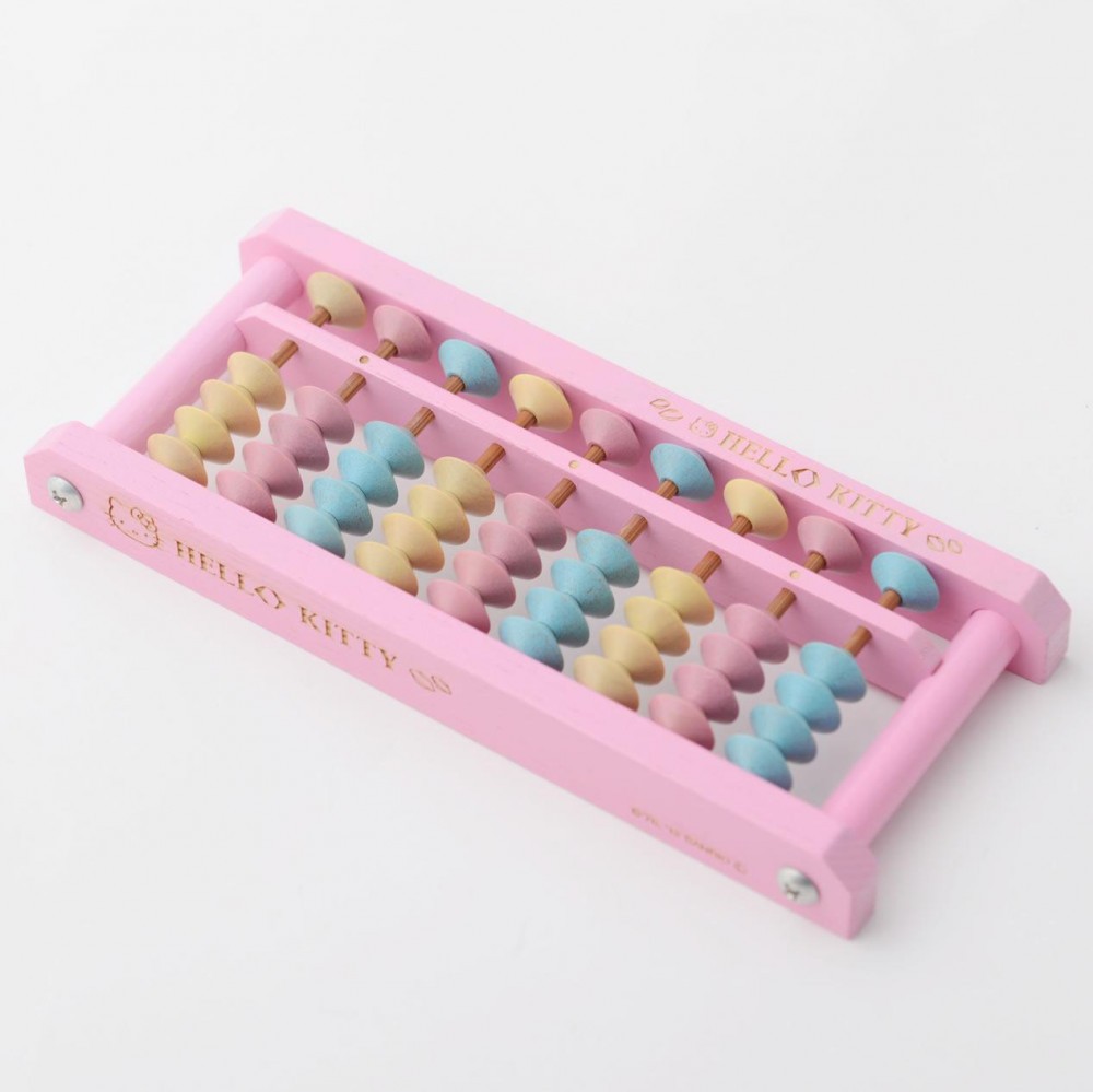 3色のパステルカラーのそろばん玉を使用したかわいいハローキティの9桁そろばんです。