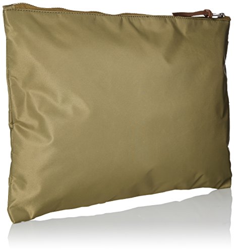 The nylon network xl pouch silhouette offers functionality and a contemporary design that includes polished metal hardware and smooth leather detailing.