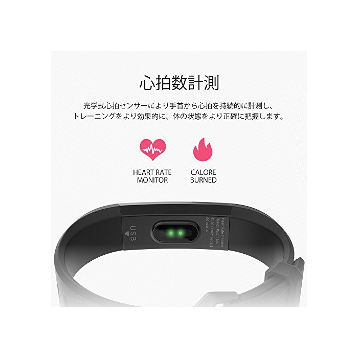 측정 내용:심박수,보수,거리,소비 칼로리,수면의 질과 시간 등,일상생활의 여러가지 씬으로 측정에 옵니다.또한리스트 밴드형 심장박계에 자동적으로 계속 측정하고, 기초 대사나 운동 소비 칼로리를 정확하게 기록하고, 운동 강도의 유지,일상의 체중 관리와 건강관리를 응원해 줍니다.