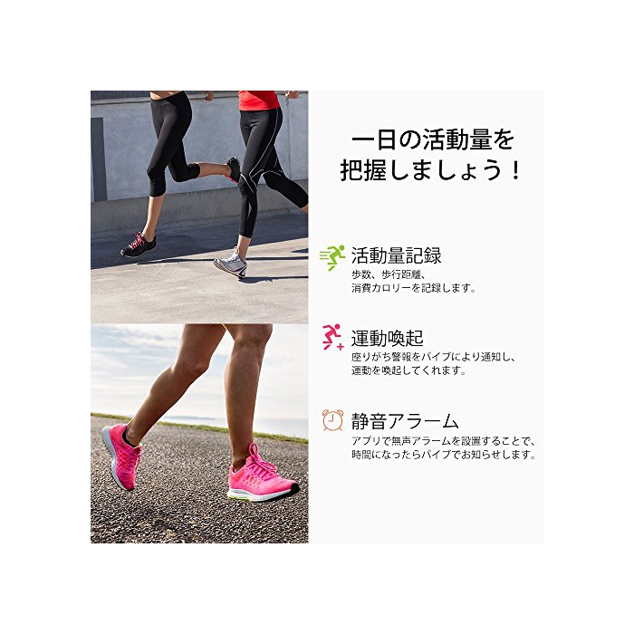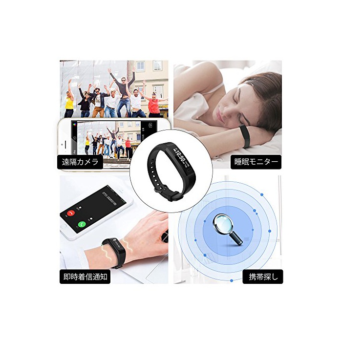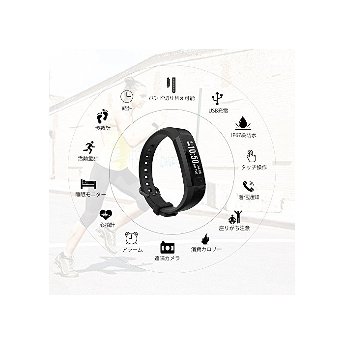 본체 기능:심박계,활동량계,보수계-페도미터,안정도가 # 리마인더,수면 모니터,휴대의 착신 통지,자명종,원격 카메라 등.시계 기능은 물론,iPhone나 Android의《스마호》와 Bluetooth에 접속 하면,심박모니터,주행 거리,칼로리 소비,수면 상황 등,나날의 여러가지 활동량의 계측이 가능합니다.