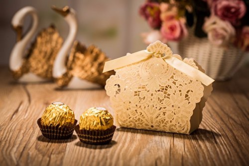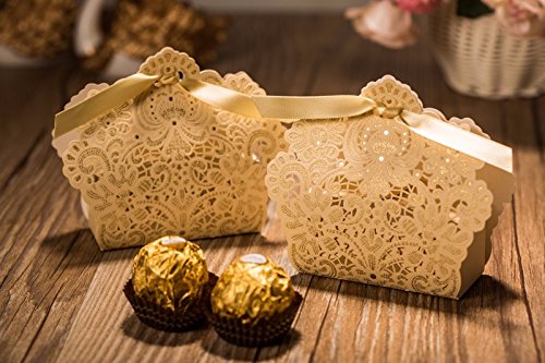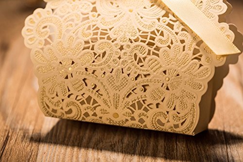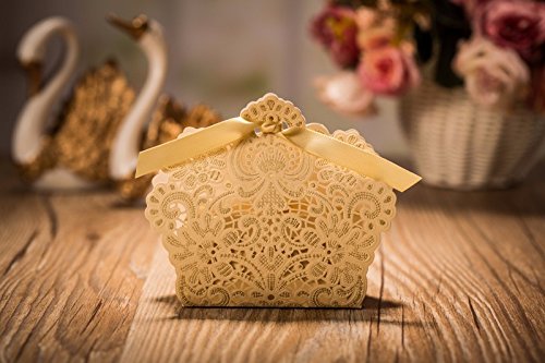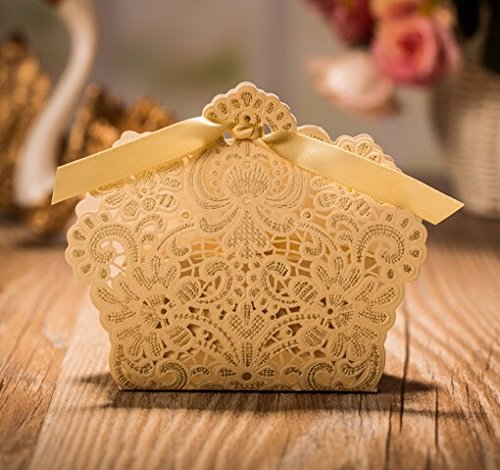 Somnr® 50 pieces Red Champagne White Color Hollow Out Wedding Candy Box Birthday Gift Box For Wedding Party Decoration CT057 (Champagne)