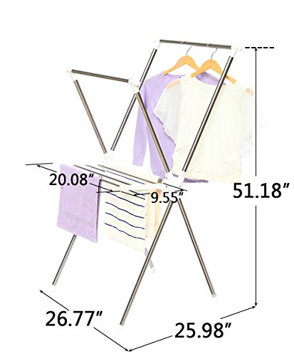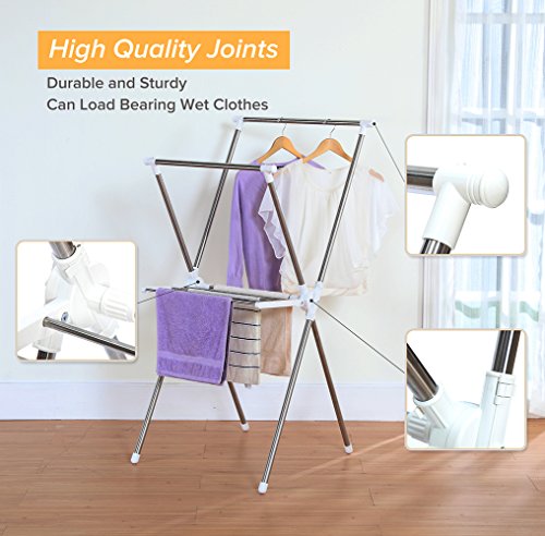 StorageManiac Folding Clothes Drying Rack, X-Frame Heavy-Duty Stainless Steel, Rust-proof Guarantee