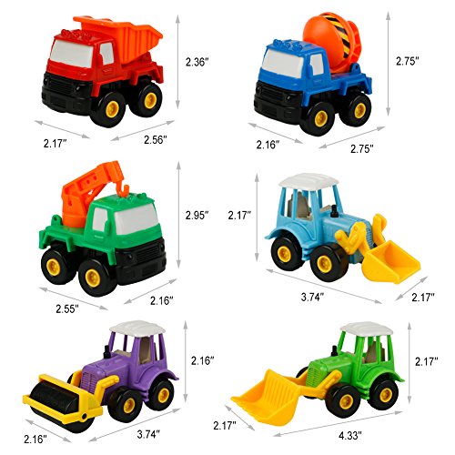 ★Bright and colorful, Includes 6 kinds of vivid shape toy trucks, a variety of ways to play, a great cars toys present to keep kids hours of fun.