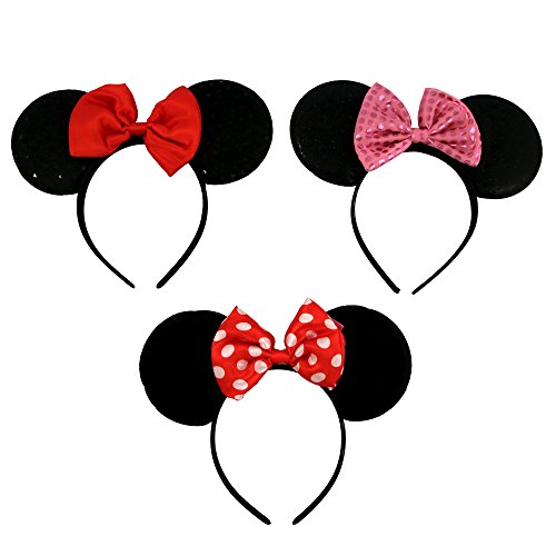 Set of three headbands featuring Disney minnie mouse in style featuring satin bows and dimensional ears