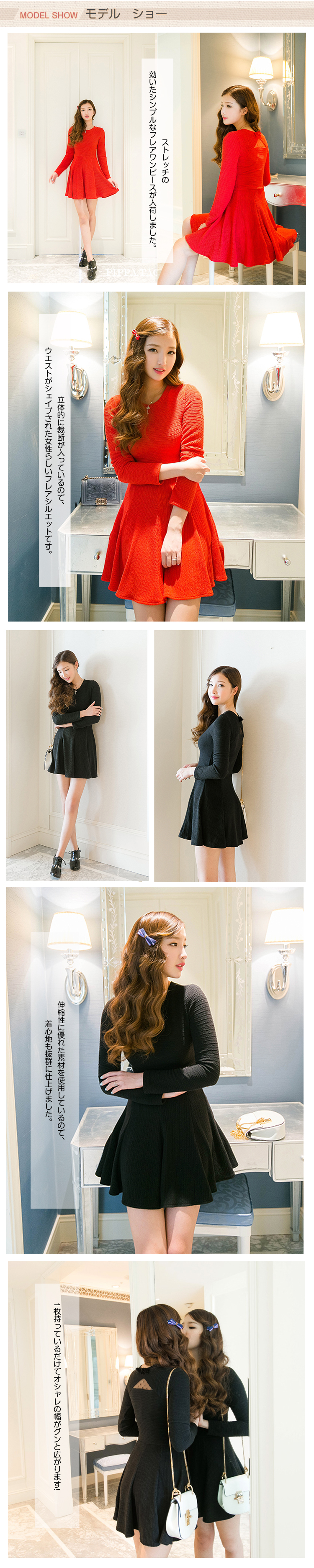 | ストレッチの効いたシンプルなフレアワンピースが入荷しました。立体的に裁断が入っているので、ウエストがシェイプされた女性らしいフレアシルエットです。伸縮性に優れた素材を使用しているので、着心地も抜群に仕上げました。1枚持っているだけでオシャレの幅がグンと広がります! | |