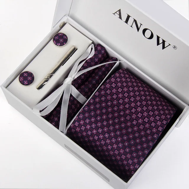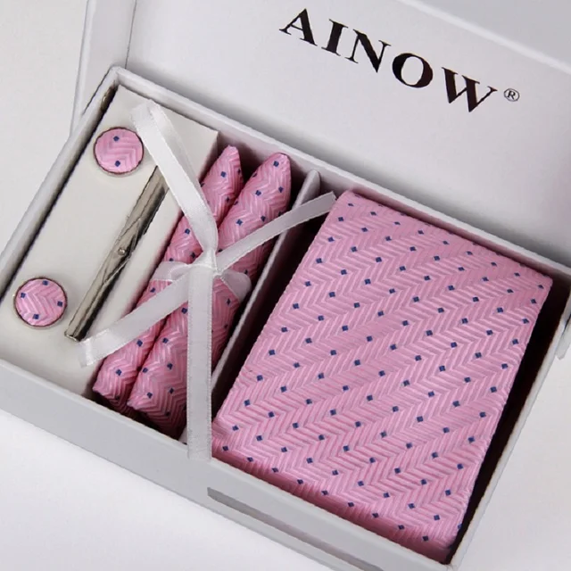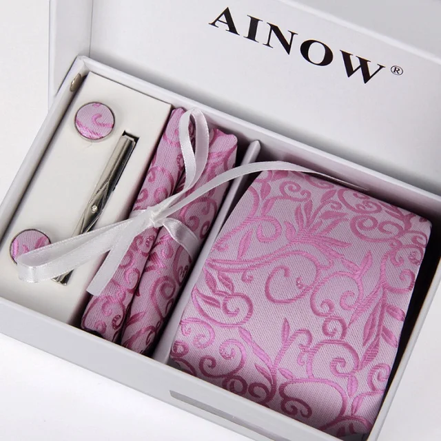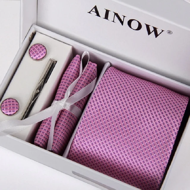 | [해외]망 넥타이 레드 핑크 체크 Gravata Corbatas 자카드 짠 넥타이 넥타이 세트 넥타이 커프스 손수건 비즈니스 웨딩 휴일 |