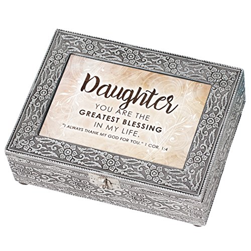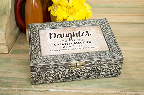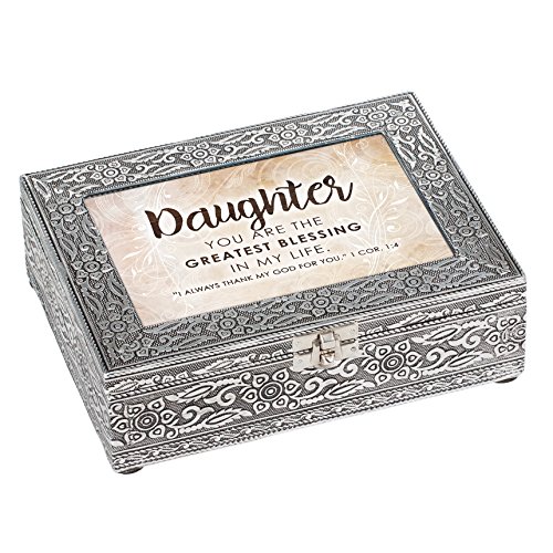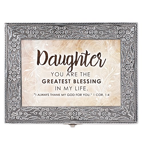 Daughter Blessing In Life Stamped Silver Tone 8 x 6 Metal Finish Music Box Plays How Great Thou Art