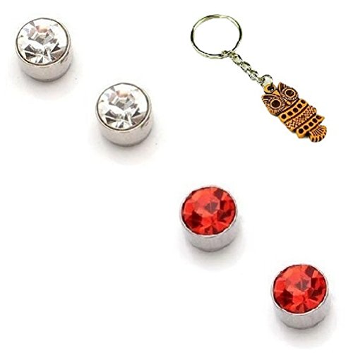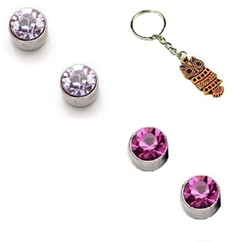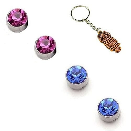 内容 : マグネットピアス 左右1セット(2個)の白 桃 銀 紫 紺 赤からの2種類、計2セット(4個)に幸運をもたらすと言われるふくろうのキーホルダーをセットとしてお付けします。