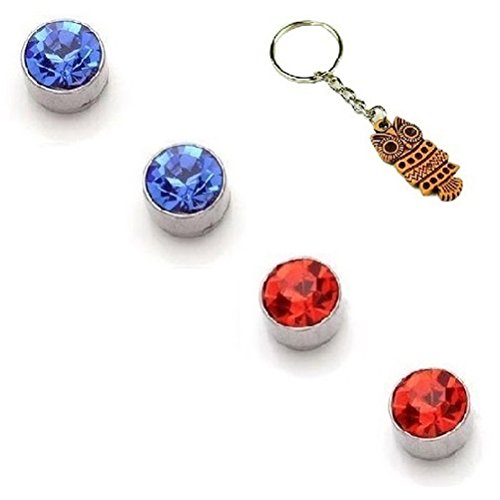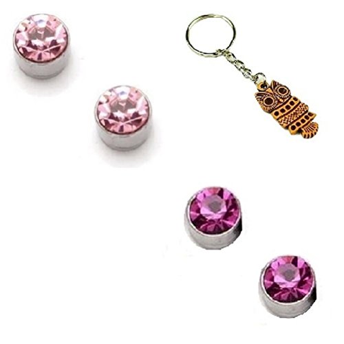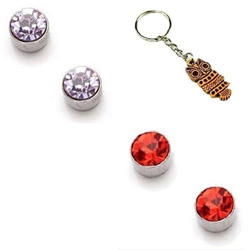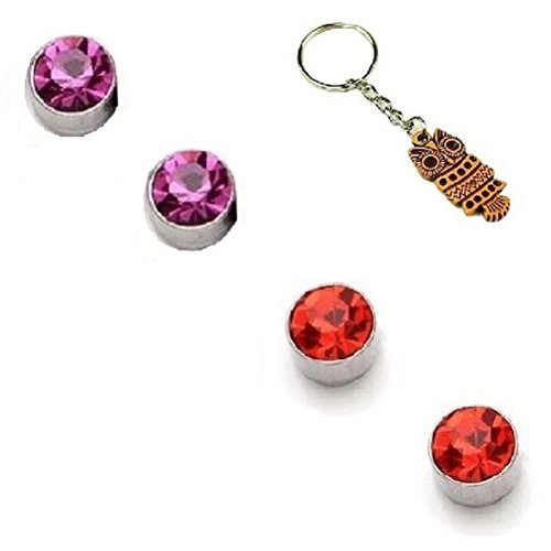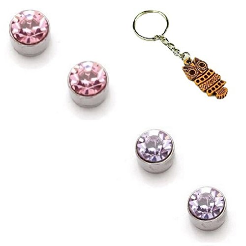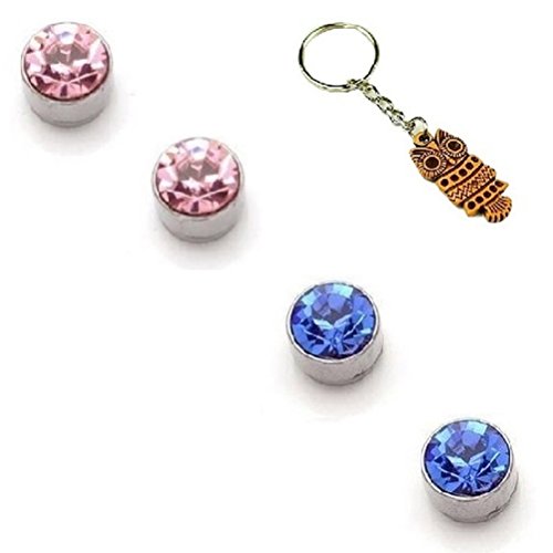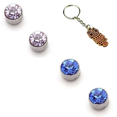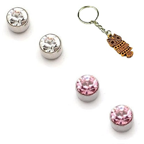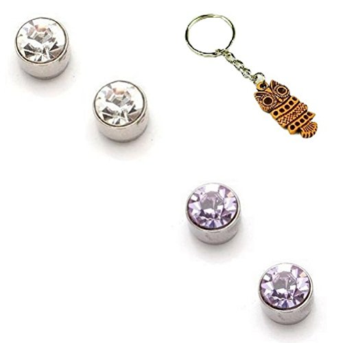 商品 : 4個 SET! 5 mm マグネット 磁石 ピアス マグピ メンズ レディース 白 桃 銀 紫 紺 赤 左右 2個 x 2 の 組み合わせ ふくろうの キーホルダー 付き