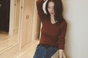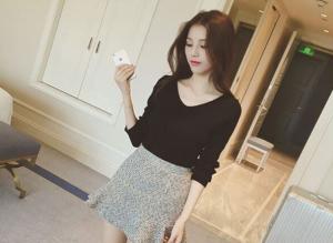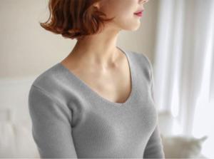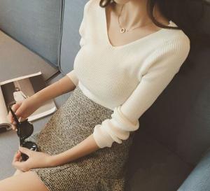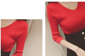 女性らしい丸みのあるVネックラインが魅力の長袖スリムニット♪