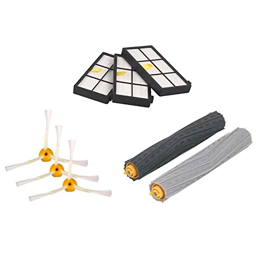 -. Binding : Kitchen -. Brand : Jhuixang -. Color : Black -. EAN : 0710882687281 -. Feature : Kit includes 3 AeroForce Filters, 3 Spinning Side Brushes, and 1 set of AeroForce Extractors / Compatible with all Roomba 800 & 900 Series Robots / Replenishment Brushes are ideal for >>Allergy sufferers and pet owners and it's also virtually maintenance-free. You don't even need to be at home to do the cleaning! Keep your home clean by changing the filters frequently - once every month or two, depending your usage / TIPS>>Filters should be replaced every 2 - 3 months. Keep your iRobot Roomba operating at peak performance / Innovativation >>Dual counter-rotating extractors incorporate a durable rubber tread design that grabs and breaks down dirt and debris from any floor type -. IsAutographed : 0 -. Label : JHX -. Manufacturer : JHX -. ProductGroup : Home -. ProductTypeName : HOME -. Publisher : JHX -. Studio : JHX -. Title : Jhuixang 8PCS Accessories for iRobot Roomba 880 860 870 871 980 990 Replenishment Parts Spare Brushes Kit -. UPC : 710882687281