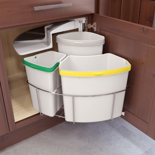 Studio : Vauth-Sagel Publisher : Vauth-Sagel Product Description 90003715 Features: -Oeko collection. -Set includes 3 bin. -Maximum total system capacity: 41 qt.. -Easy fit: Tool-free removal and replacement after initial installation. - Easy removal of entire system for cleaning the cupboard, for example no additional strain on the front bins swing out when the door is opened. - Can be combined with all standard hinges. Material: -Metal Plastic. Dimensions: -Cabinet width: min. 15.75" for the single and double bin version. -Cabinet minimum widths: 19.69" for three and four-bin versions. -Installation minimum depth: 13.82" and 17.75". -Installation minimum height: 20.75". Overall Height - Top to Bottom: -20.75". Overall Width - Side to Side: -17.75". Overall Depth - Front to Back: -17.75". Overall Product Weight: -12 lbs. 0