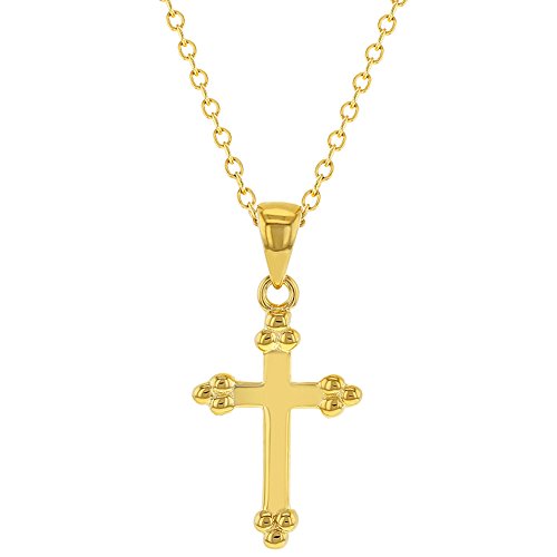 -. Feature : Yellow Gold Flashed 925 Sterling Silver Cross Pendant Necklace for Girls / Cross Size: 0.62 in. H x 0.47 in. W (16mm x 12mm); Chain Length: 16 inches (40cm) / Perfect Gift for a Baptism, First First Holy Communion, First Reconciliation or Confirmation / Age Group: Ideal for Girls, Kids and Teens; Gift Box Included / Total Satisfaction Guaranteed: 30 Day Money Back Guarantee