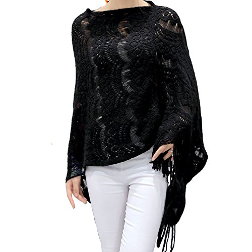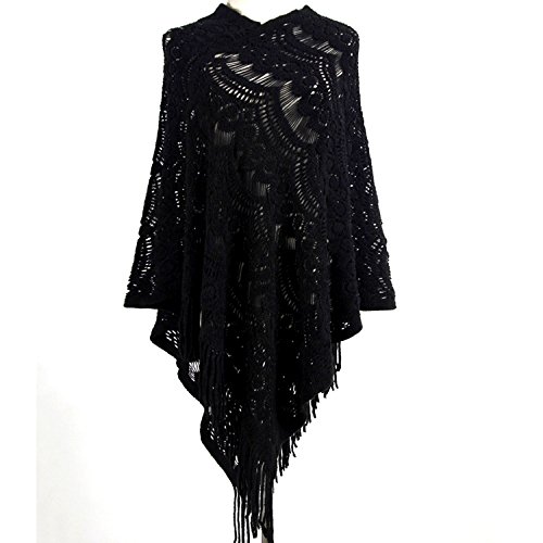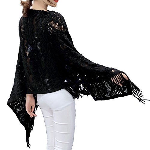 SUKUTU Ladies' Poncho Cape with Fringed Hem Knitted Shawl for Women