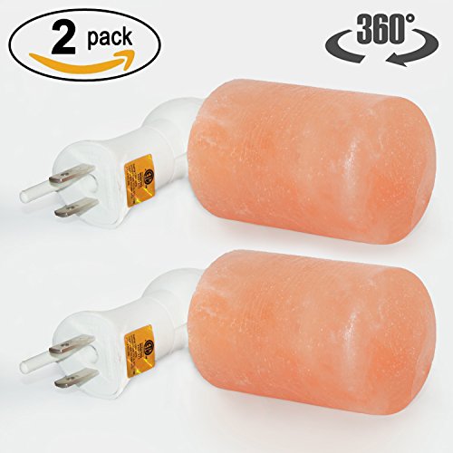 2 Pack Himalayan Salt Lamp Mini Hand Carved Night Light Wall Plugs with Amber Glow 2 Nightlight Plug 2 Salt Cylender Lamps , 15 Watts 3 Bulbs