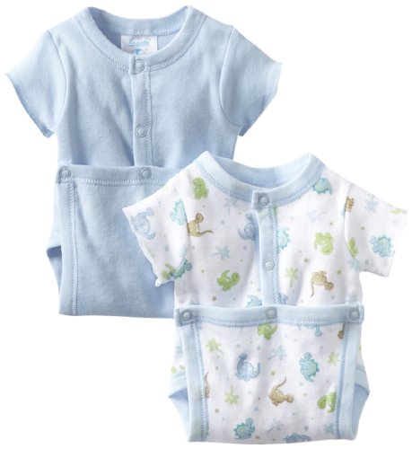 Feature : Easy dressing; no need to pull over baby's head; bodysuit opens completely / Front snaps for easy dressing / 100 percent interlock cotton / 2 wrap bodysuits / Machine wash