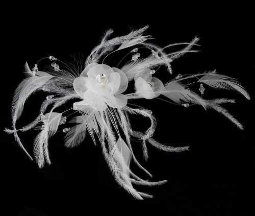 Studio : outlet Publisher : outlet Binding : Health and Beauty Product Description This entrancing feather fascinator features two mesh fabric flowers at the center, subtle seed bead accents, and a surrounding spray of feathers. Perfect for the modern or vintage bride.