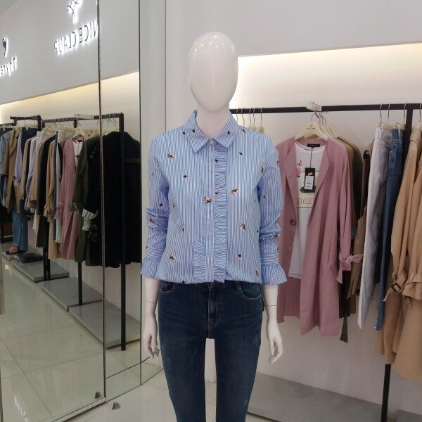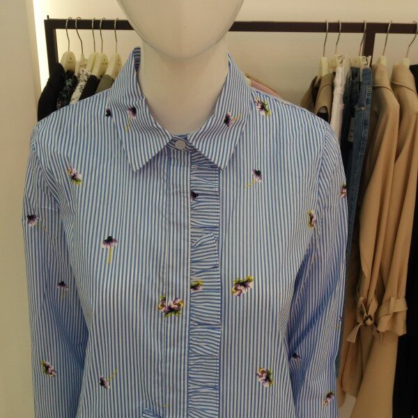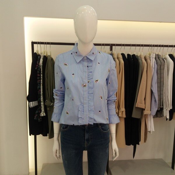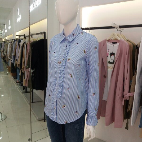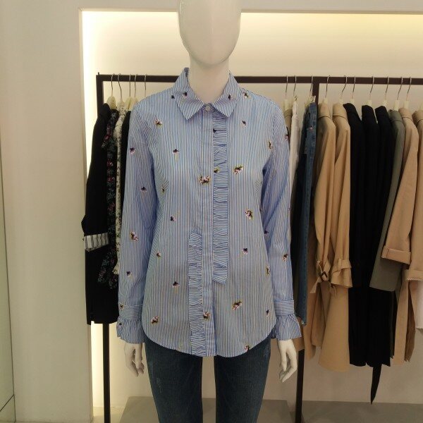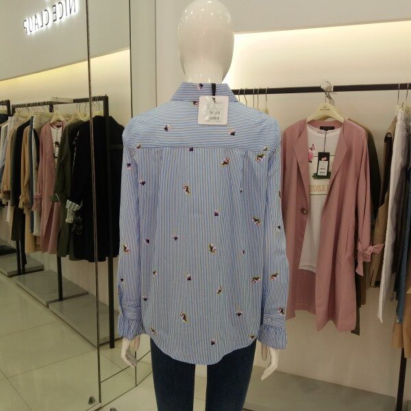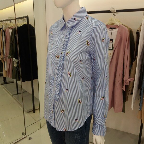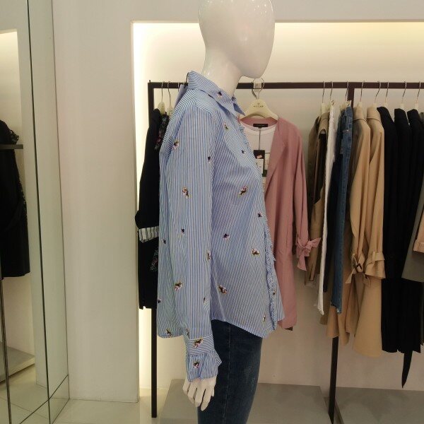 티렌 스트라이프에 패턴이들어간 여성스러운블라우스입니다 색감이 뚜렷해서 청바지랑입으심 화사한 블라우스가되겁니다