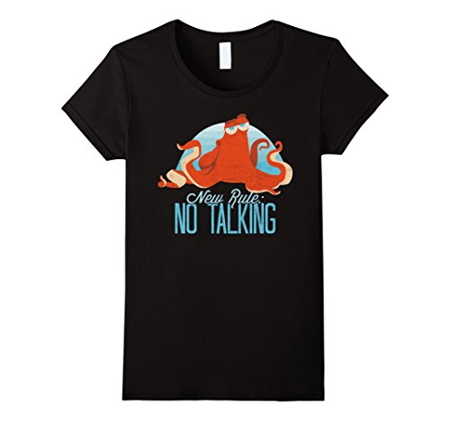 Dory loves the Finding Dory Hank No Talking Rule Graphic T-Shirt and she just can't stop talking about it! Hank, the grumpiest octopus in the ocean, is finally fed up with the talkative Dory and is portrayed next to the rule "New Rule No Talking" on this hilarious Finding Dory shirt.Feature
