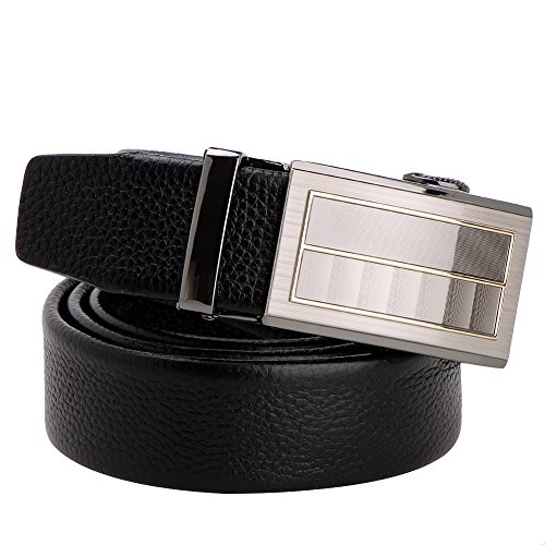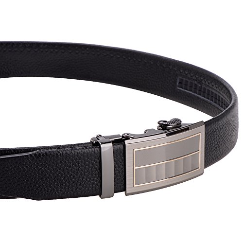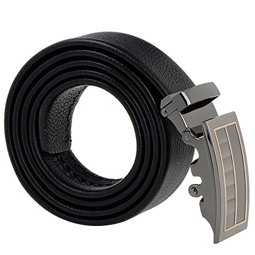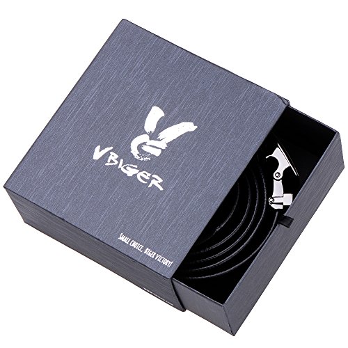 - Title : Vbiger Men's 35mm Wide Genuine Leather Ratchet Belt with Automatic Alloy Buckle (Grey Black)