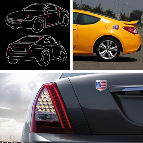 Specification: Material: Aluminium Alloy Dimension: 5cm(1.97'') x 5cm(1.97'') L*W Style: American Flag Quantity: 2 piece