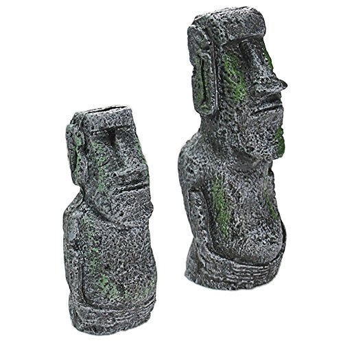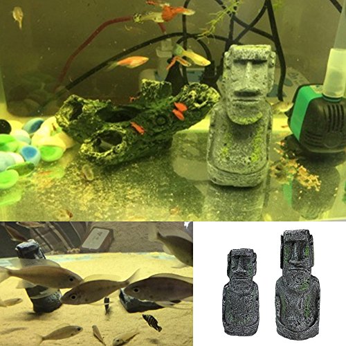 Kangkang@ 2 PCS Ancient Easter Island Head Statue Portrait Aquarium Fish Tank Ornament Home Desktop Decoration Accessories