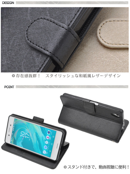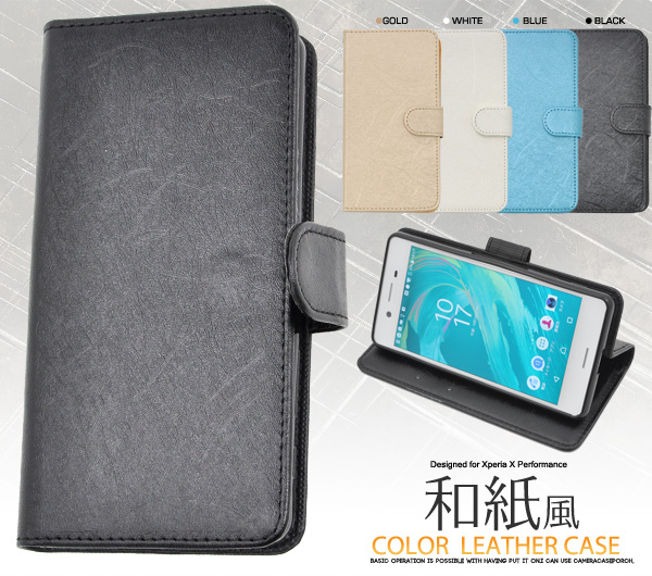 スタイリッシュな和紙風レザーデザインのXperia X Performance用スタンドケースポーチ。