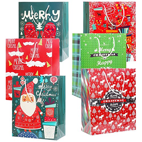 Gift Bags ,Plaviya Shopping Bags Gift Wrapper Paper Bags with White Ribbon Handles for Party Weddings Presents, Party bags 6 Pack (H32*W26*D12cm) (6 pack)