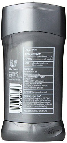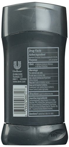 -. Binding : Health and Beauty -. Brand : Dove -. Feature : 48-hour odor protection -. IsAdultProduct : 0 -. Label : Dove -. Manufacturer : Dove -. ProductGroup : Beauty -. ProductTypeName : BEAUTY -. Publisher : Dove -. Size : oz -. Studio : Dove -. Title : Dove Men Plus Care NonIrritant Antiperspirant, Clean Comfort, 2.7 Ounce