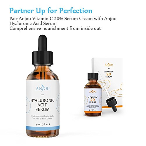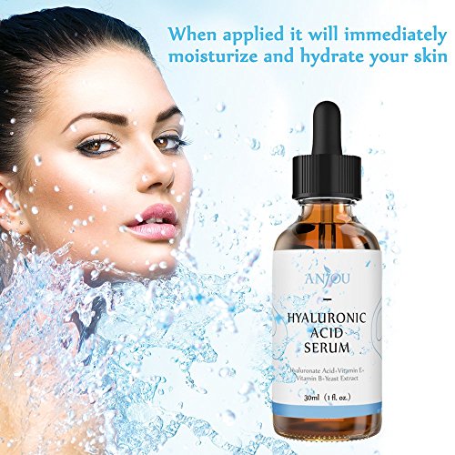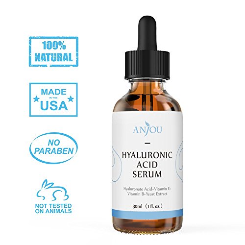 [Description] Hydrate and reinvigorate: Larger molecules in Anjou hyaluronic acid serum lock in moisture while smaller molecules hydrate the skin_ together they help to restore elastic and youthful skin Natural: Refined and formulated with the highest quality natural ingredients_ all layers of the skin are penetrated so it stays moisturized_ bright_ and radiant Stay young: With a HA content of 3% that is far above similar products_ anti-aging and a youthful finish are yours No additives: no paraben preservatives_ no artificial Color_ no test on animals_ no petroleum chemical ingredient Countless benefits: Enjoy rich_ replenished skin with Vitamin B_ E_ and other natural essences that combat aging and the effects of the sun