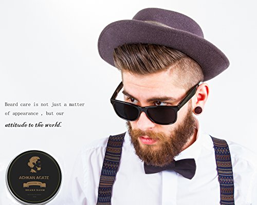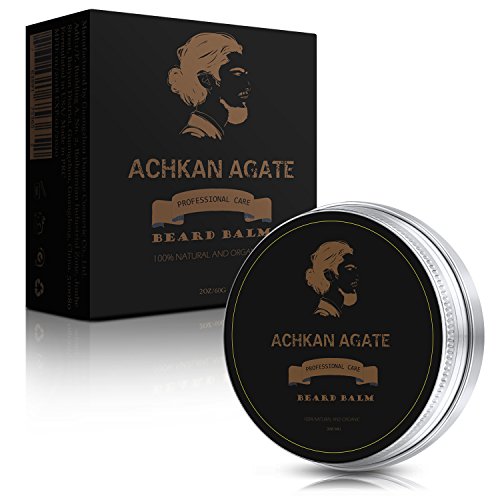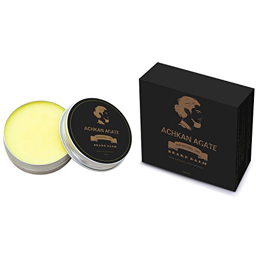 Beard Balm Leave in Conditioner with Shea Butter By ACHKAN AGATE-Sandalwood Scent-Men's Best Beard Care Butter&Facial Hair Growth Accelerator-Softens, Moisturizes, Tames Your Beard, Whiskers, Mustache