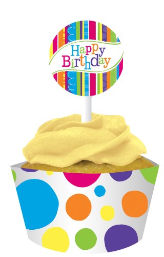 Creative Converting 12 Count Cupcake Wrappers with Picks, Bright and Bold Birthday