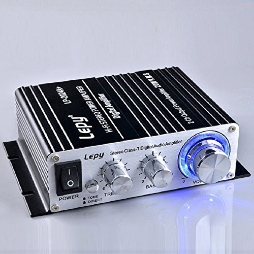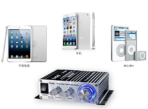 Feature : Surround Sound Channel Configuration: 2 / 100% brand new and high quality. / RCA Input ,Can be plug in with Ipod,MP3/MP4 / It has Blue LED light ring round Volume Knob;Bass/Treble tuning. / Mini size easy to installation by DIY without manual, especially good fit for car, motorcycle bike,boat, every where!