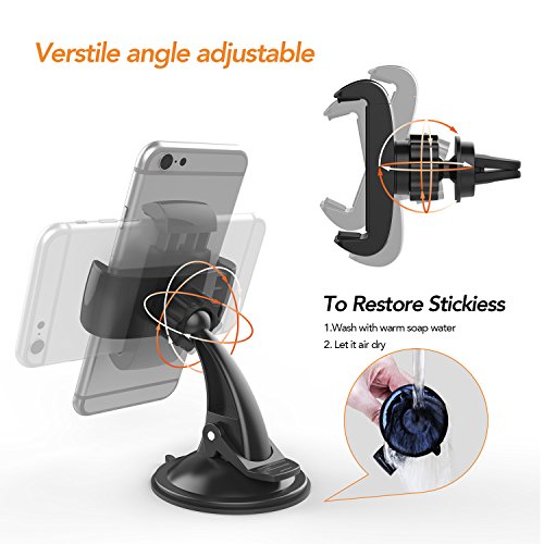 One fits all –It is not only a mount to use in car windscreen, dashboard, air vent, but can also be used on desk, kitchen and any other smooth or textured surface.