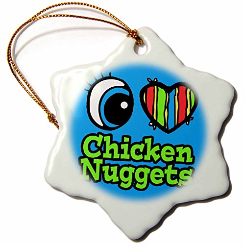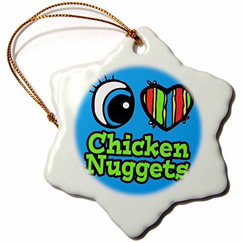 3dRose orn_105956_1 Bright Eye Heart I Love Chicken Nuggets Snowflake Ornament, Porcelain, 3-Inch