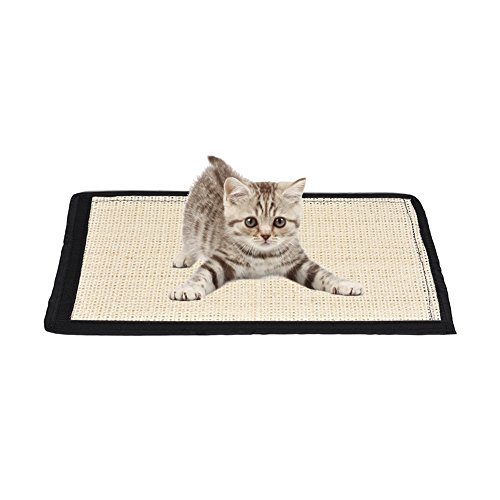 Made from durably natural 100% sisal fibers and with a bold black frame,durable for scratching; It satisfies your cats natural scratching instincts and enables them to sharpen and remove the dead outer layers of their claws; It can also be used as a sleeping bed for all the year round; A nice place for your pets to rest and also grind their teeth; Packing list:cat sisal mat*1. 0