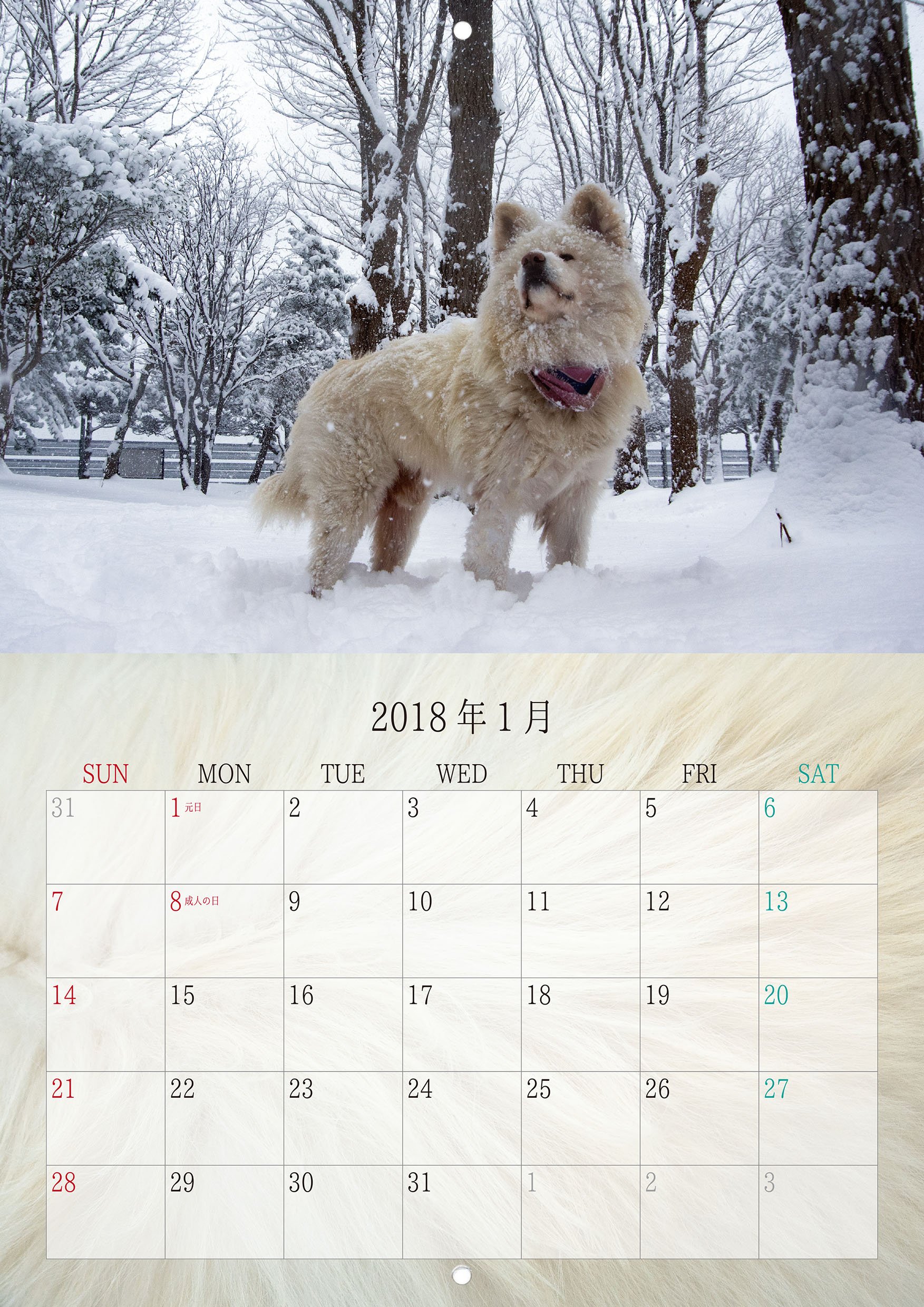 Popular dog in Ajigasawa town, Aomori Prefecture, 2018 Wall Calendar.