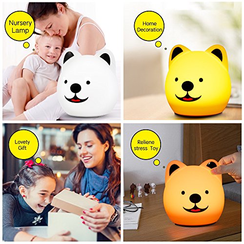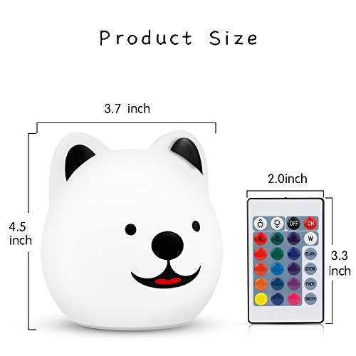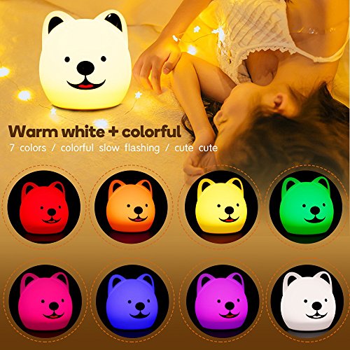 - ◕‿◕--Puppy model: Super cute puppy model made of BPA-free washable silicone, the soft touch is pleasant, it is the children's romantic bed toy companion. Handheld size and eco-friendly design make it a perfect bedroom, study, baby room night decor as well as a fabulous gift idea especially for kids, girls and ladies.